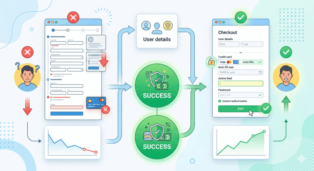 これらはいずれも、ユーザーの「買いたい」という意思とは無関係に発生する技術的・UX的な障壁です。フォームの設計次第で、離脱率を大きく変えられる性質のものです。